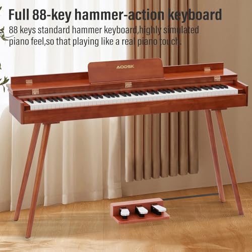 AODSK Wooden Digital Piano 88 Key Full Size Weighted Keyboard,All Solid Wood Body Piano for Beginners,with Sheet Music Stand,Triple Pedal,Power Adapter,Supports USB-MIDI Connecting(UB-99G)