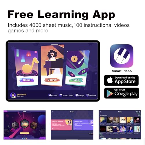 With the unique illuminated piano key technology and free learning apps, The ONE Smart Piano teaches you to play your first song in minutes!The ONE seeks to make playing the piano more fun and less expensive. Beginner musician can learn with light-up keys, integrated video lessons, and piano games. Seasoned musicians can have equal fun by choosing from thousands of free sheet music to play.